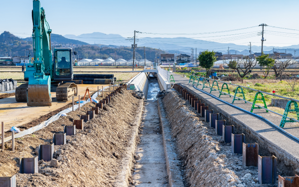 道路、橋梁、上下水道、河川整備などのインフラ整備を通じて、地域の生活基盤の向上に貢献しています。耐久性と環境配慮を両立させた施工を行います。
